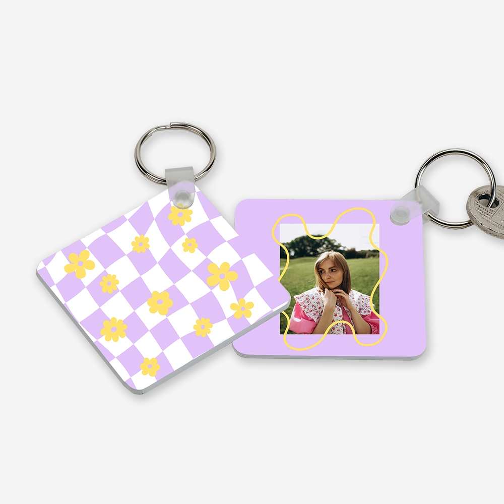 Produzido em acrílico resistente, este porta-chaves combina leveza e durabilidade. A personalização é feita por sublimação térmica nos dois lados, garantindo cores vivas e detalhes nítidos.